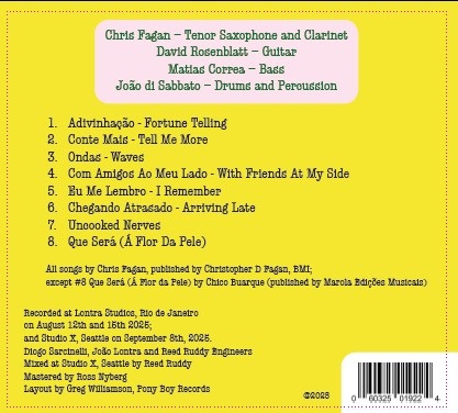 So on a trip to Brazil, I recruited my long-time friend and collaborator, David Rosenblatt to help me find the right Brazilian grooves and together we made the recording in Rio de Janeiro, him on guitar, me on woodwinds, and the very talented Brazilians Matias Correa on bass and João di Sabbato on drums and percussion. And here we are. I was satisfied that the timbre of the tenor and clarinet–new instruments to me–projected the emotions that call to me in my continual awakening in this mysterious universe, emotions that I could never communicate with my speaking voice, and enough novelty to claim a place in the massive lava flow of creative material that is our commercial music ecosystem and share what I have with you. I hope you enjoy.
